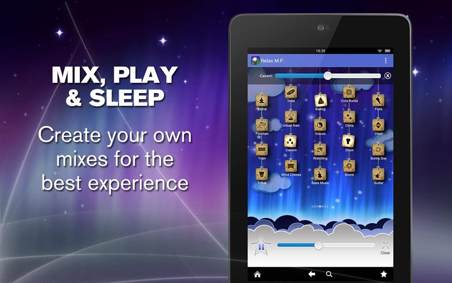 - Misture seu sons favoritos juntamente com o volume invidual ou crie suas próprias melodias pessoais